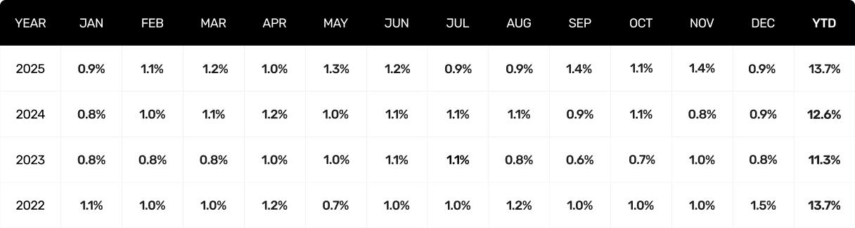 We have consistently outperformed industry benchmarks such as the S&P/TSX Composite Index, iShares Canadian Corporate Bond Index ETF, and iShares Core Canadian Universe Bond Index ETF for more than a decade.