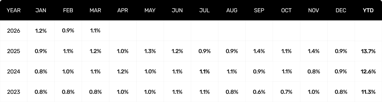 The Fund generates consistent cash flow, which allows us to confidently offer monthly liquidity to investors. The short duration of the Fund's assets also allows it to adjust pricing and underwriting protocols in order to maintain returns in changing market conditions.